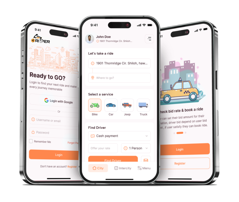 Riders enter their trip details, and drivers submit competitive bids. Riders can compare offers based on price and ratings.